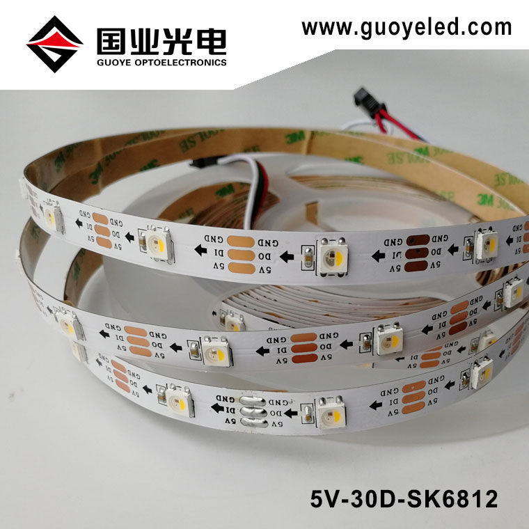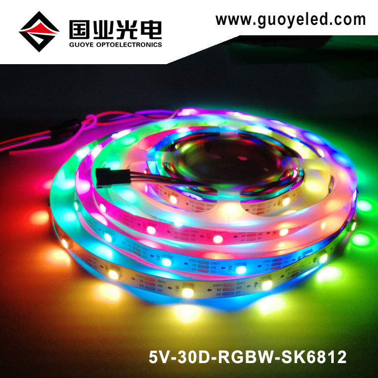 Η διευθυνσιοδοτούμενη ταινία led RGBW είναι κατασκευασμένη με έξυπνο IC SK6812 σε RGB+W 5050SMD LED, το λευκό χρώμα RGBW μπορεί να είναι ζεστό λευκό 3000K, φυσικό λευκό 4000K ή καθαρό λευκό 6000K, Είναι αναβαθμισμένη έκδοση του RGB, μπορεί να παράγει 16 εκατομμύρια χρώμα στατικού φωτός, Μπορεί επίσης να παράγει μια ποικιλία δυναμικών εφέ κυνηγιού. Ο σχεδιασμός της λωρίδας led με δυνατότητα διεύθυνσης RGBW έχει 30 led ανά μέτρο (30 ανεξάρτητα pixel), 5 μέτρα ως ρολό (16,4 πόδια), IP30 μη αδιάβροχο ή άλλα αδιάβροχα επίπεδα προσαρμόζονται επίσης. Το SK6812 έχει πλουσιότερες δυνατότητες χρωματικής διακύμανσης και συνδυασμού χρωμάτων, οθόνη φωτεινότητας 256, έγχρωμη οθόνη 32 bit. Κάθε pixel έχει το δικό του χρώμα και φωτεινότητα. Μπορείτε να τα ελέγξετε μεμονωμένα και να τα ορίσετε σε οποιοδήποτε χρώμα ή κινούμενο σχέδιο θέλετε